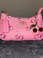 Coach Pink Cherry-Print Shoulder Bag with Cherry Charm
